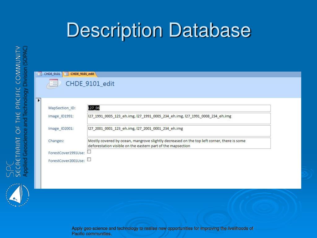Mangrove Development in Fiji from 1991 to 2007. Vilisi Tokalauvere SPC-SOPAC. Data Sources. Landsat Image 1991 FOCO 1991/2001 Landsat Image 2001 ALOS 2007 Visual Interpretation. Description Database. MapInfo to ERDAS. Forest, Mangrove polygons exported (DXF) to ERDAS.