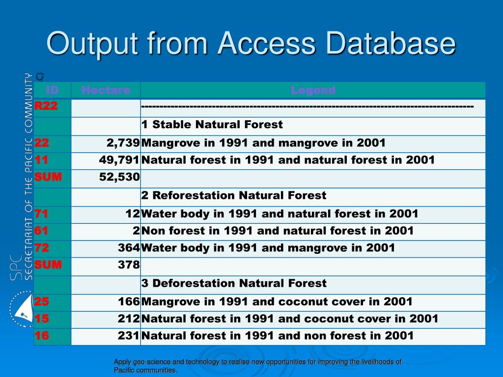 MapInfo to ERDAS • Forest, Mangrove polygons exported (DXF) to ERDAS. • Add Projection. • Convert to raster. • Recode polygon values. • Add to forest cover layer. • Now all handled by ArcGIS (spatial analyst)