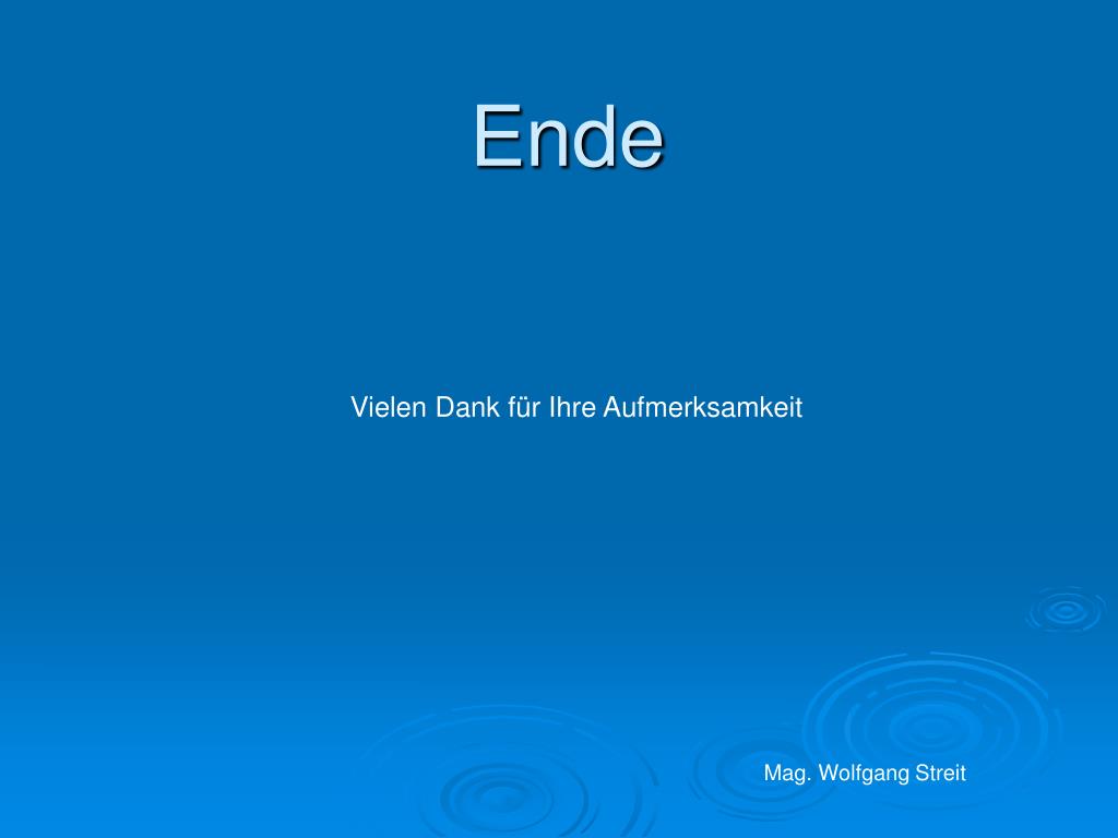 Ende Vielen Dank für Ihre Aufmerksamkeit Mag. Wolfgang Streit