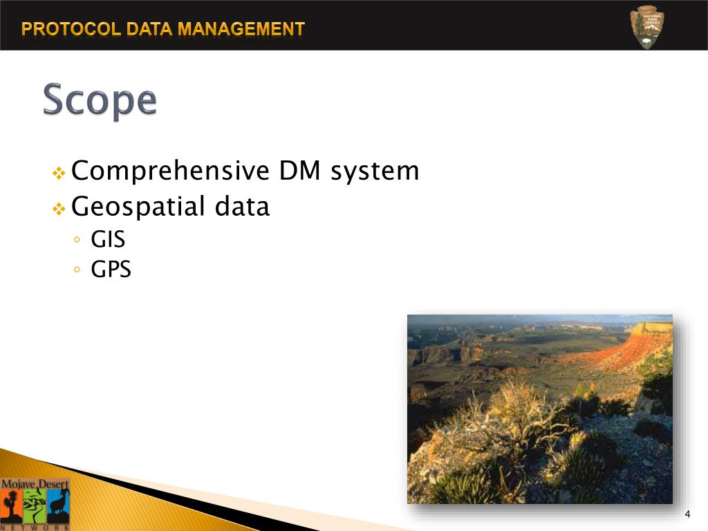 Scope • Comprehensive DM system • Geospatial data • GIS • GPS