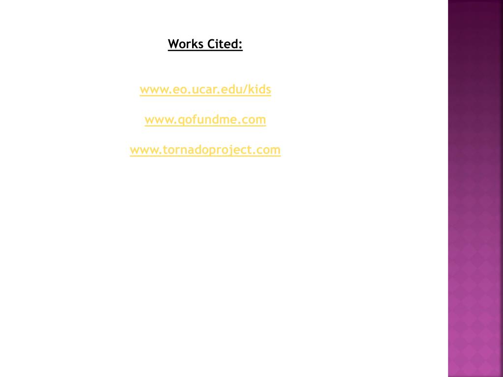 Works Cited: www.eo.ucar.edu/kids www.qofundme.com www.tornadoproject.com