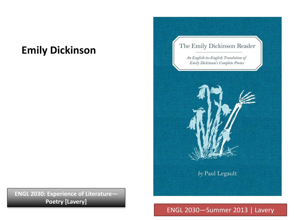 Emily Dickinson 1830-1886. ENGL 2030—Summer 2013 | Lavery. Emily Dickinson. ENGL 2030—Summer 2013 | Lavery. Emily Dickinson Over 1700 poems found after her death. ENGL 2030: Experience of Literature—Poetry [Lavery]. ENGL 2030—Summer 2013 | Lavery. Emily Dickinson.