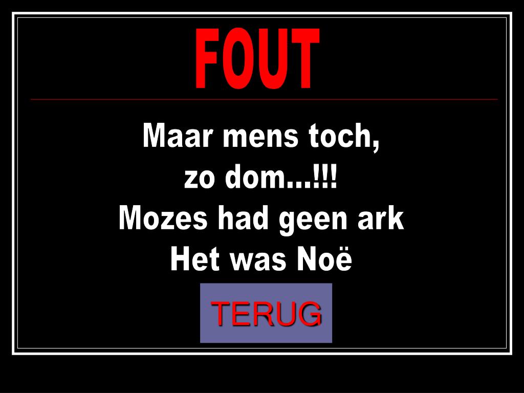 FOUT Maar mens toch, zo dom...!!! Mozes had geen ark Het was Noë TERUG