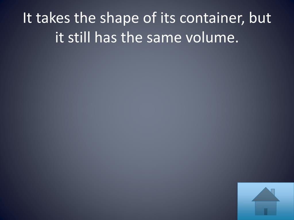 The molecules are moving and slipping past each other, though they still like to stick together if they can.They take the shape of their container.Their volume is always the same.