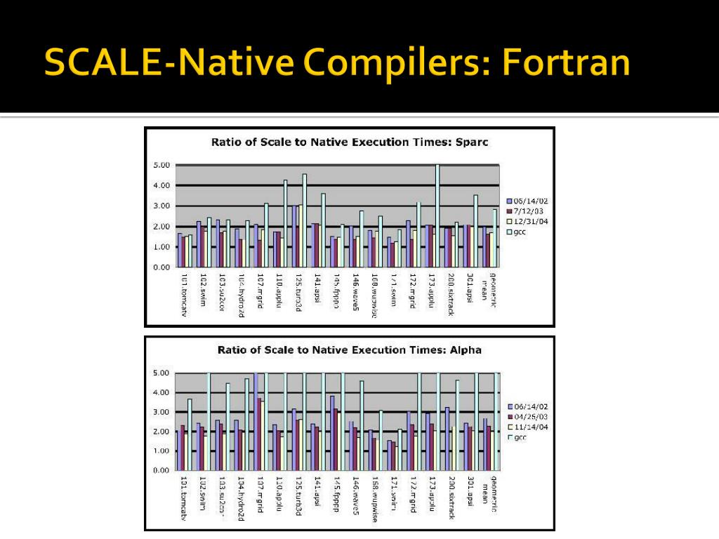 SCALE-Uses • Provide a powerful framework to support research into compiler optimizations • e.g., Type-based alias analysis • Gather empirical results on new ideas • Compile multiple procedure-oriented languages