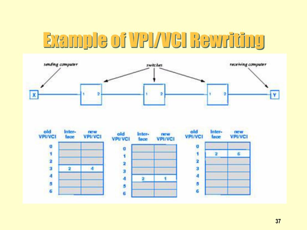 Label Switching • ATM connection identified with 24-bit binary value • Known as Virtual Path Identifier / Virtual Channel Identifier (VPI / VCI) • Generically called label • VPI / VCI rewritten at each switch