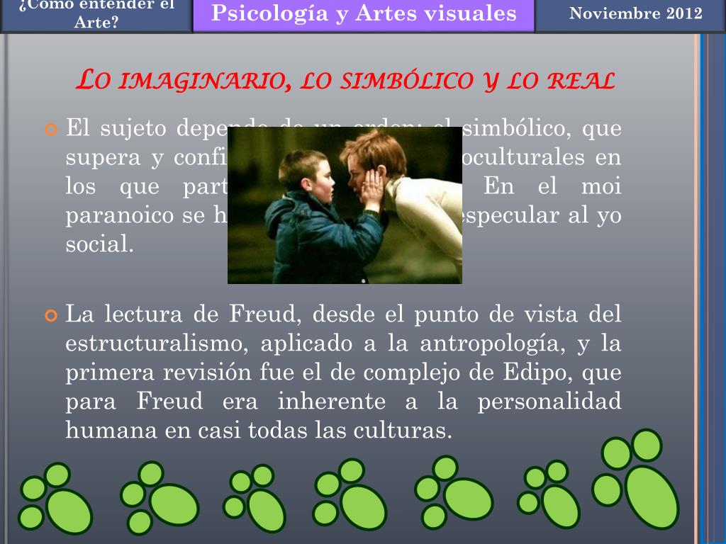 Lo imaginario, lo simbólico y lo real • El sujeto depende de un orden: el simbólico, que supera y configura los valores socioculturales en los que participa como sujeto. En el moi paranoico se hace el pasaje del yo especular al yo social. • La lectura de Freud, desde el punto de vista del estructuralismo, aplicado a la antropología, y la primera revisión fue el de complejo de Edipo, que para Freud era inherente a la personalidad humana en casi todas las culturas.