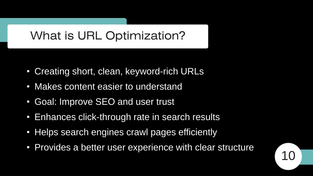 What is URL Optimization? • Creating short, clean, keyword-rich URLs • Makes content easier to understand • Goal: Improve SEO and user trust • Enhances click-through rate in search results • Helps search engines crawl pages efficiently • Provides a better user experience with clear structure 5 10
