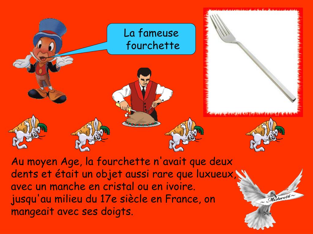 Anecdotes. culinaires. PPS manuel et musical. D’où elle vient l’expression METTRE LA TABLE ?. Au Moyen âge, on mettait réellement la table, c'est à dire qu'on installait des tréteaux sur lesquels on posait des planches. Pourquoi trouve t ’on des couteaux avec des bouts-ronds.