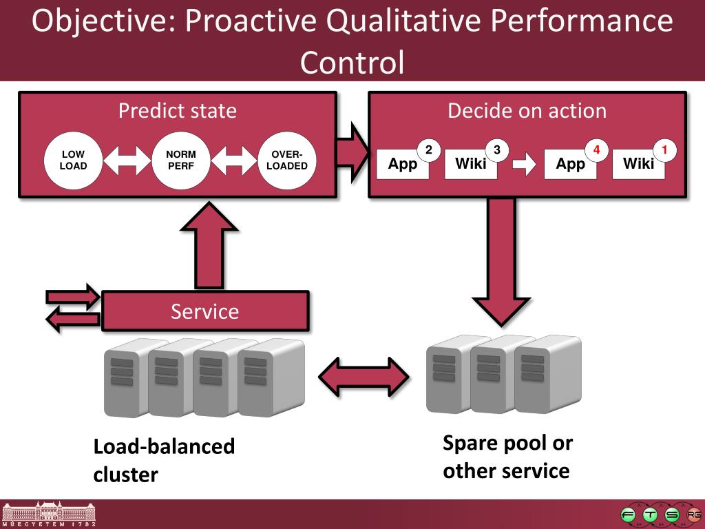 Objective: Proactive Qualitative Performance Control Predictstate Decideonaction Service Sparepoolorother service Load-balancedcluster