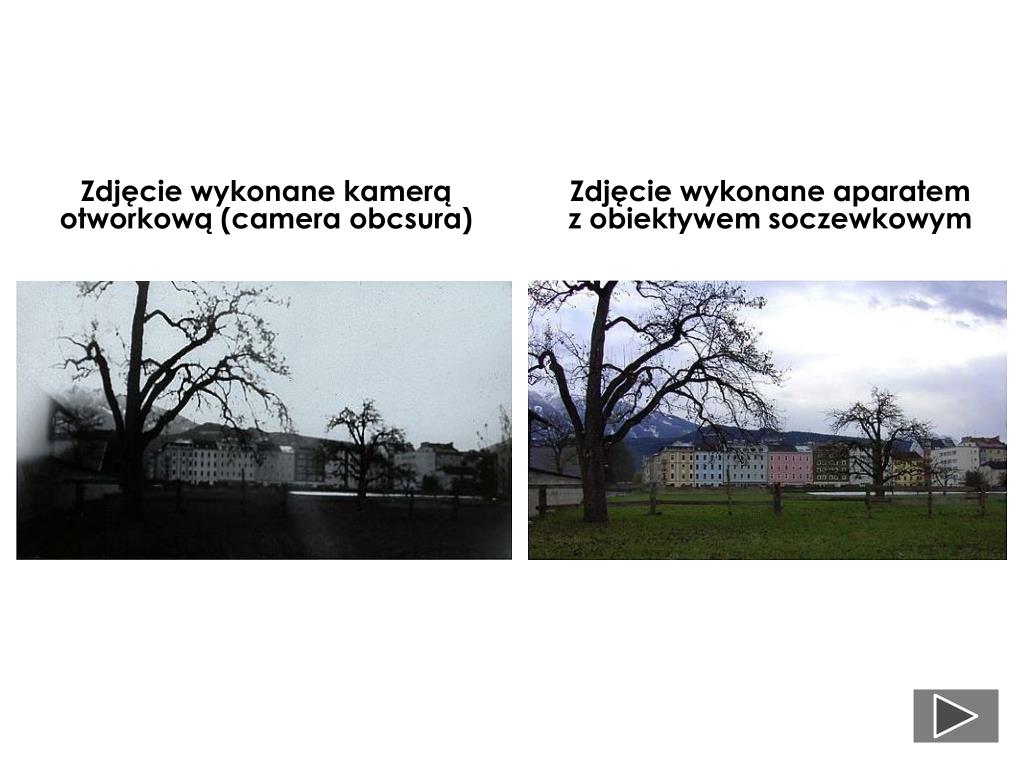 Zdjęcie wykonane kamerą otworkową (camera obcsura) Zdjęcie wykonane aparatem z obiektywem soczewkowym