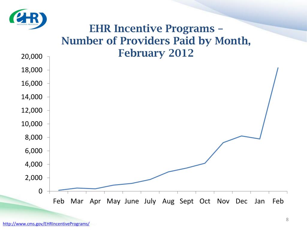 EHR Incentive Programs EHR Incentive Programs – Number of Providers Paid by Month, February 2012