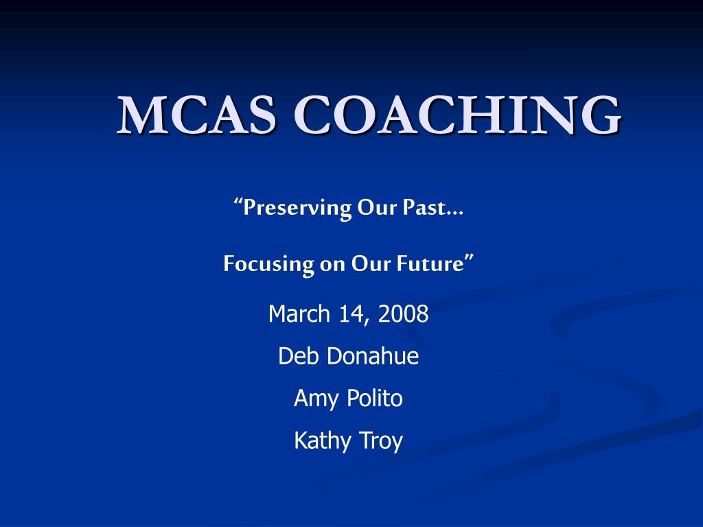MCAS COACHING “Preserving Our Past… Focusing on Our Future” March 14, 2008 Deb Donahue Amy Polito Kathy Troy