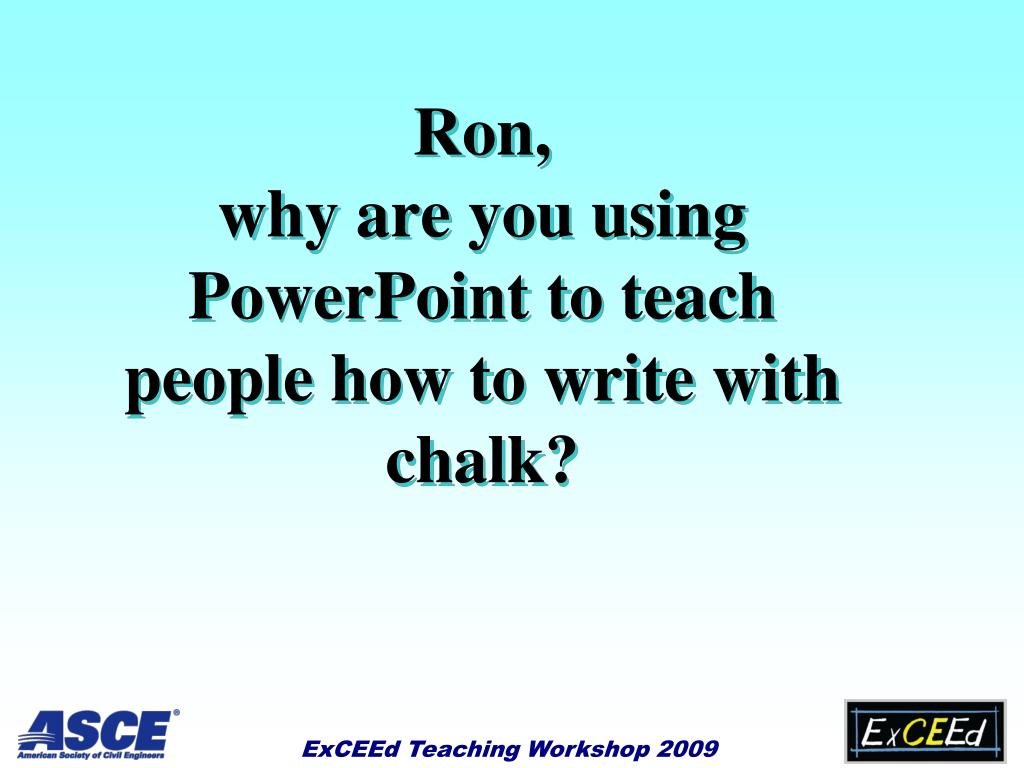 Ron, why are you using PowerPoint to teach people how to write with chalk?