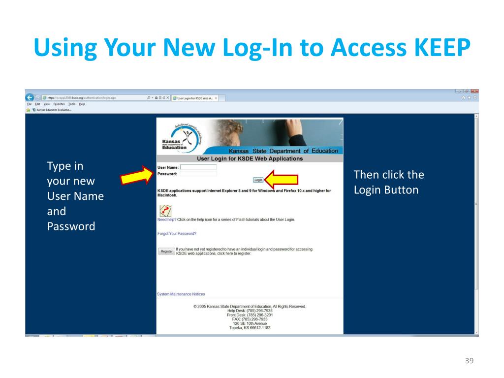Using Your New Log-In to Access KEEP Type in your new User Name and Password Then click the Login Button