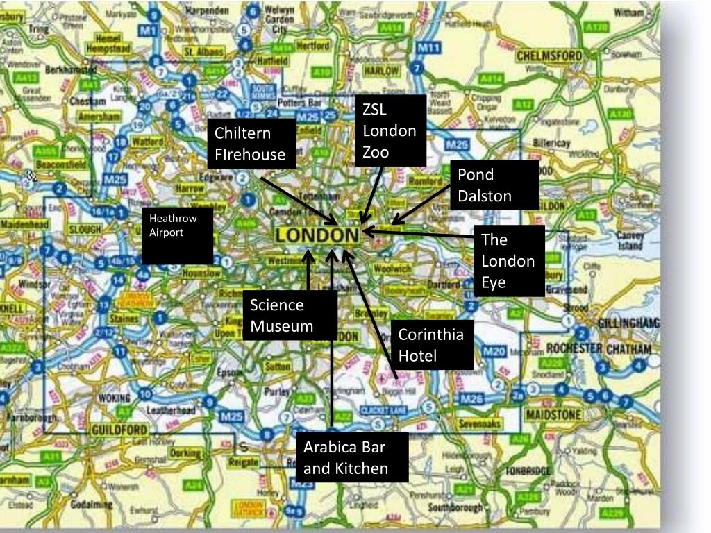 ZSL London Zoo Chiltern FIrehouse Pond Dalston Heathrow AirportAirport The London Eye Science Museum CorinthiaHotel Arabica Bar and Kitchen