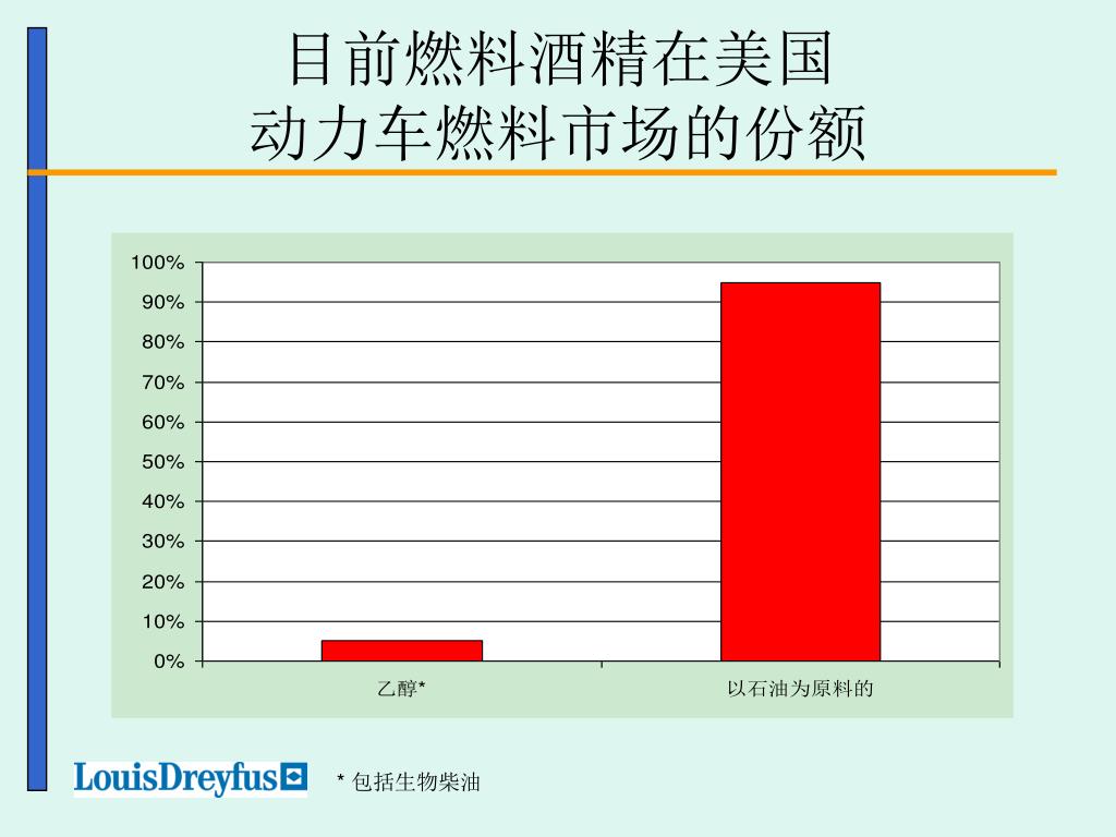 目前燃料酒精在美国动力车燃料市场的份额 * 包括生物柴油