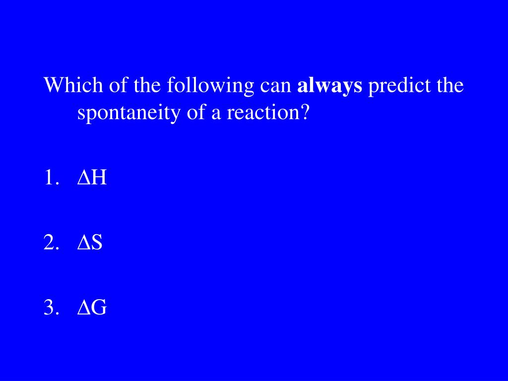 Which of the following can always predict the spontaneity of a reaction? • H • S • G