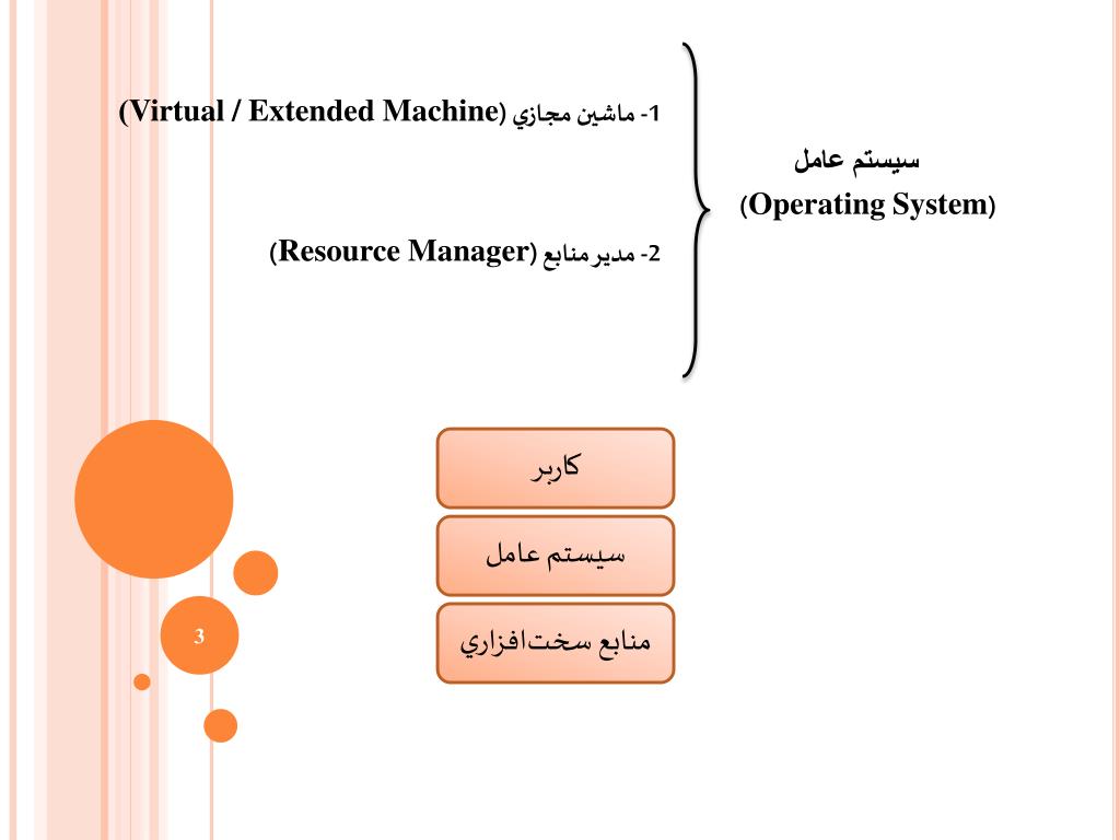 كاربر سيستم عامل منابع سختافزاري 1- ماشين مجازي (Virtual / Extended Machine) سيستم عامل (Operating System) 2- مدير منابع (Resource Manager)