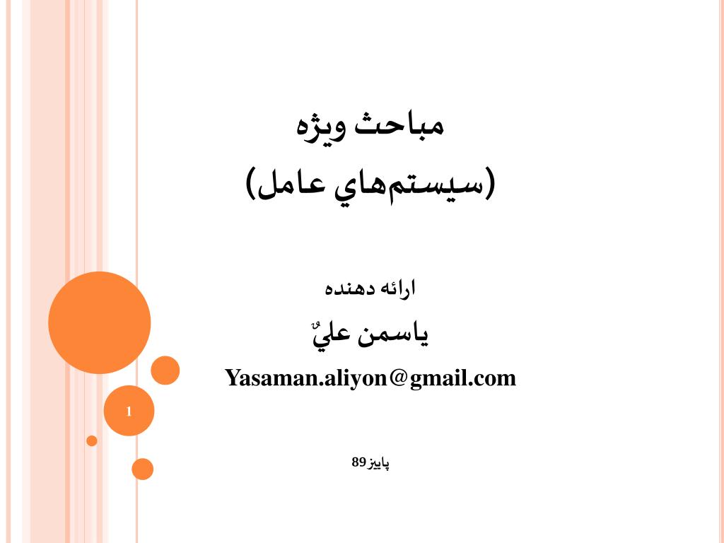 مباحث ويژه (سيستمهاي عامل) ارائه دهنده ياسمن عليٌ Yasaman.aliyon@gmail.com پاييز 89