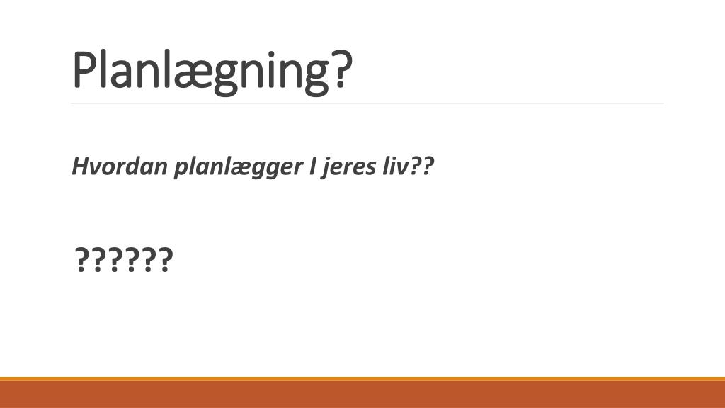 Planlægning? • Hvordan planlægger I jeres liv?? • ??????