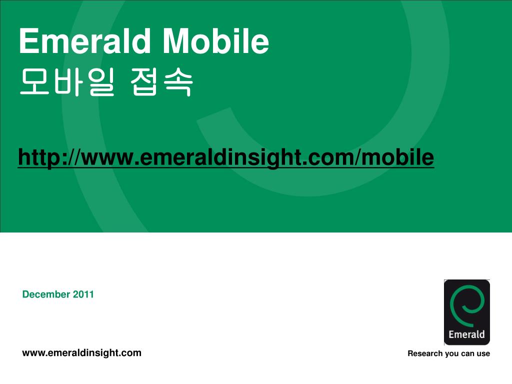 Emerald Mobile모바일 접속 http://www.emeraldinsight.com/mobile December 2011