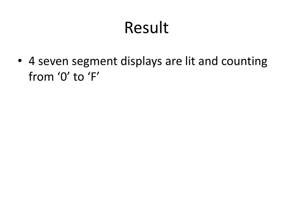 Result • 4 seven segment displays are lit and counting from ‘0’ to ‘F’