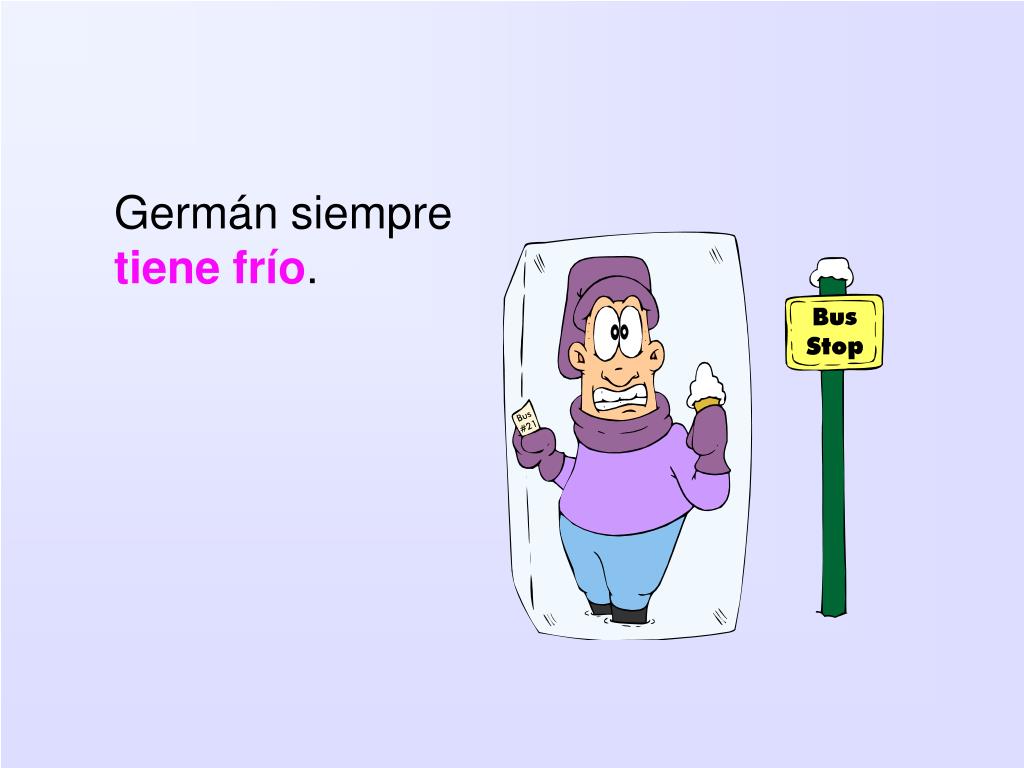A recordar: a) tiene fríob) tiene calorc) tengo hambred) tengo sueño Silvi Pero Germán a) tengo hambre b) tiene calor c) tiene fríod) tengo sueño