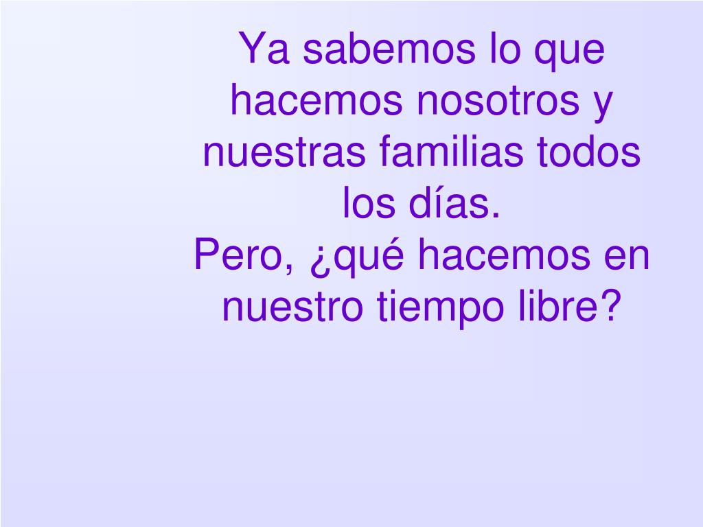 Ya sabemos lo que hacemos nosotros todos los días. Ahora vamos a ver lo que hacen nuestras familias