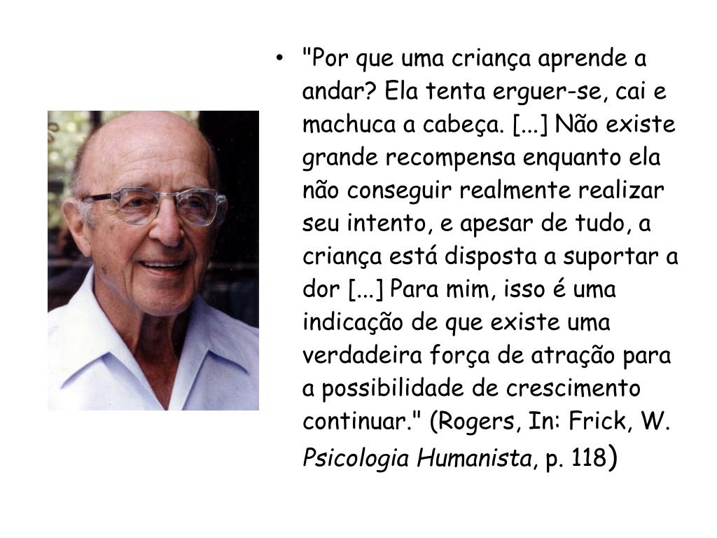 "Por que uma criança aprende a andar? Ela tenta erguer-se, cai e machuca a cabeça. [...] Não existe grande recompensa enquanto ela não conseguir realmente realizar seu intento, e apesar de tudo, a criança está disposta a suportar a dor [...] Para mim, isso é uma indicação de que existe uma verdadeira força de atração para a possibilidade de crescimento continuar." (Rogers, In: Frick, W. Psicologia Humanista, p. 118)