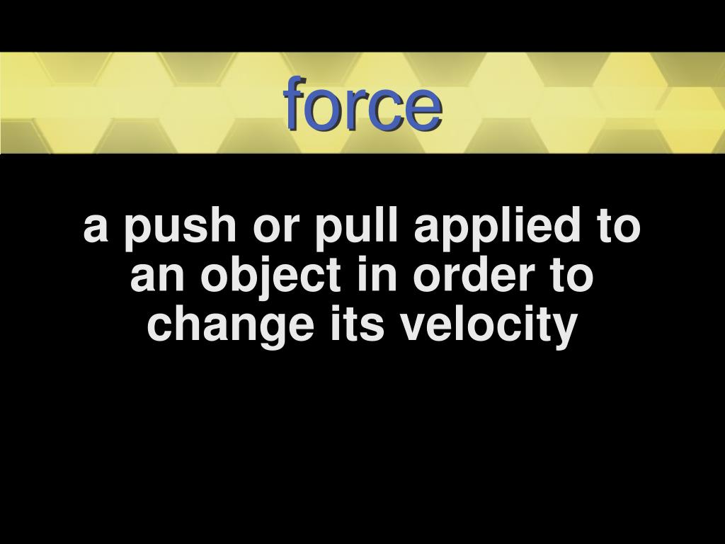 force a push or pull applied to an object in order to change its velocity