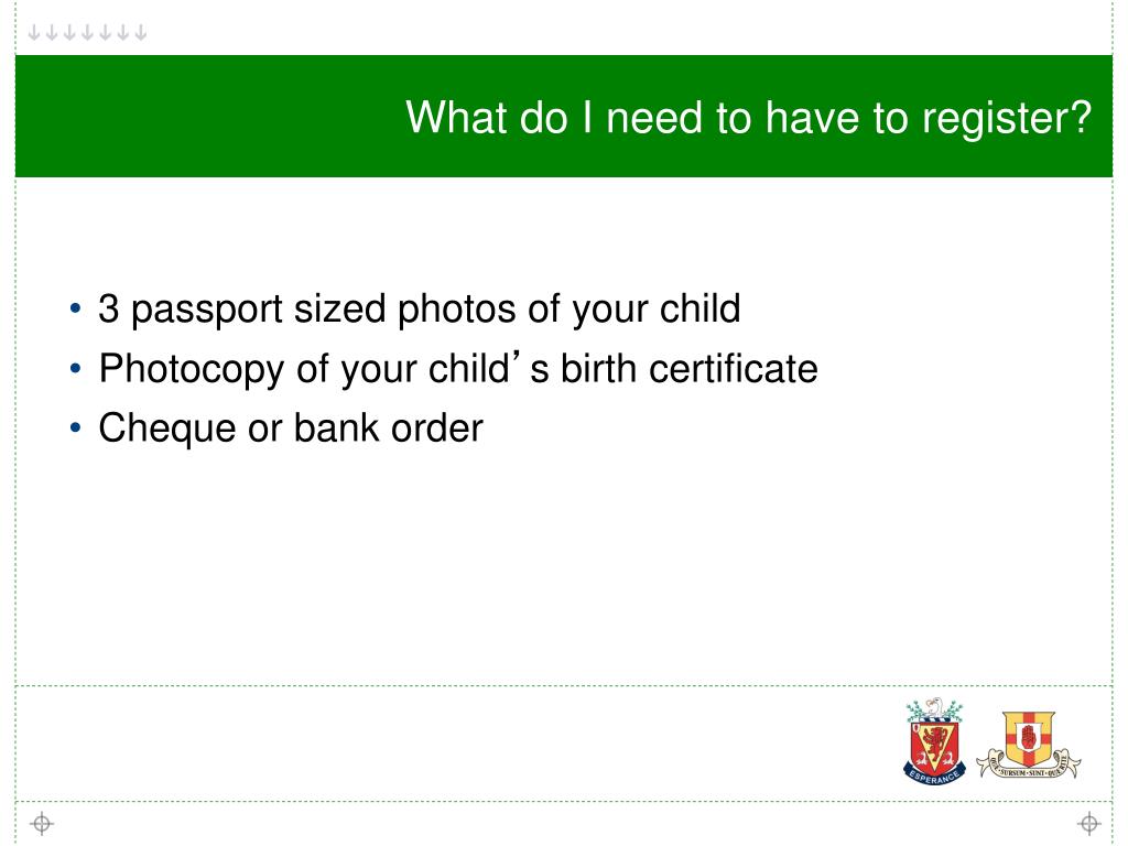 What do I need to have to register? • 3 passport sized photos of your child • Photocopy of your child’s birth certificate • Cheque or bank order