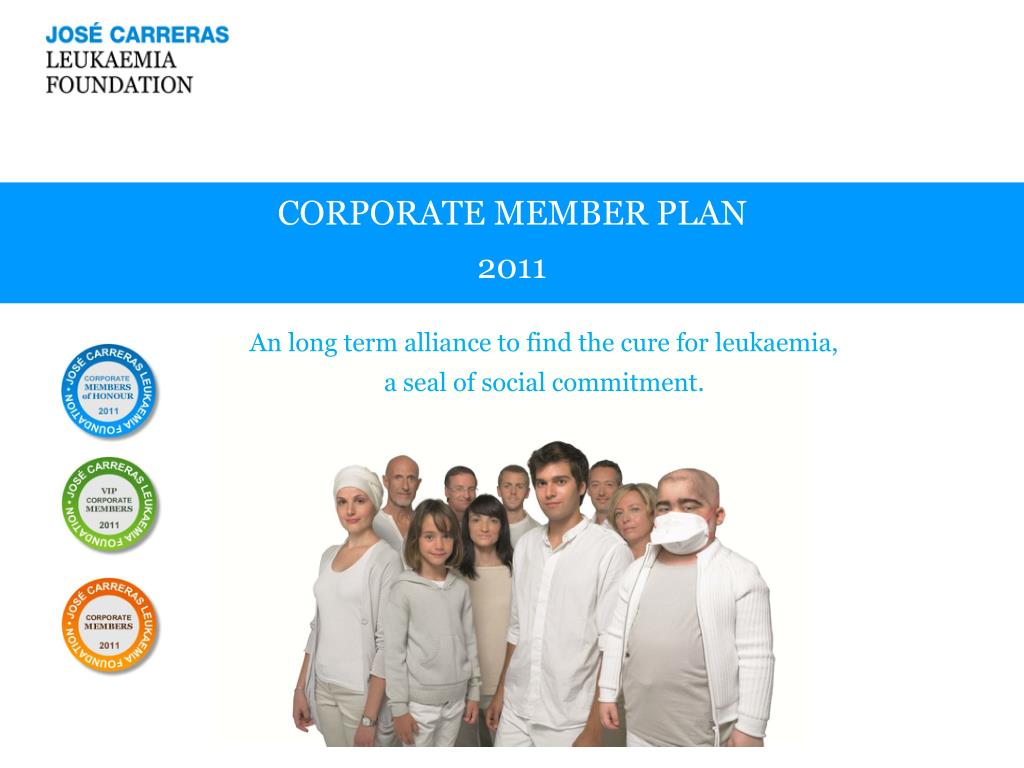 CORPORATE MEMBER PLAN 2011. An long term alliance to find the cure for leukaemia, a seal of social commitment. Who are we?. “I always thought that if there was one chance in a million, then it would be mine” Josep Carreras.