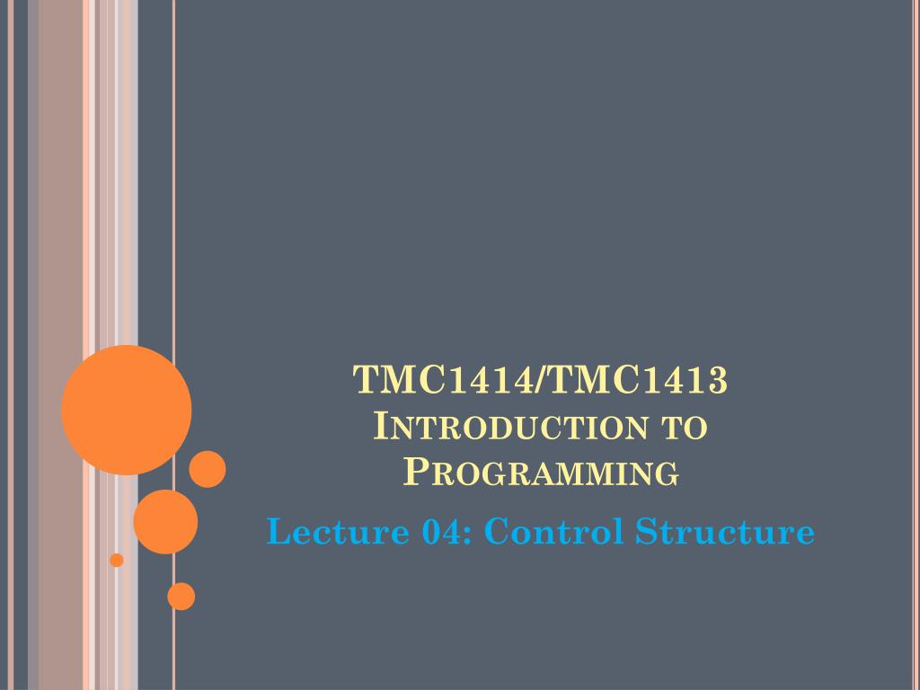 TMC1414/TMC1413Introduction to Programming Lecture 04: Control Structure