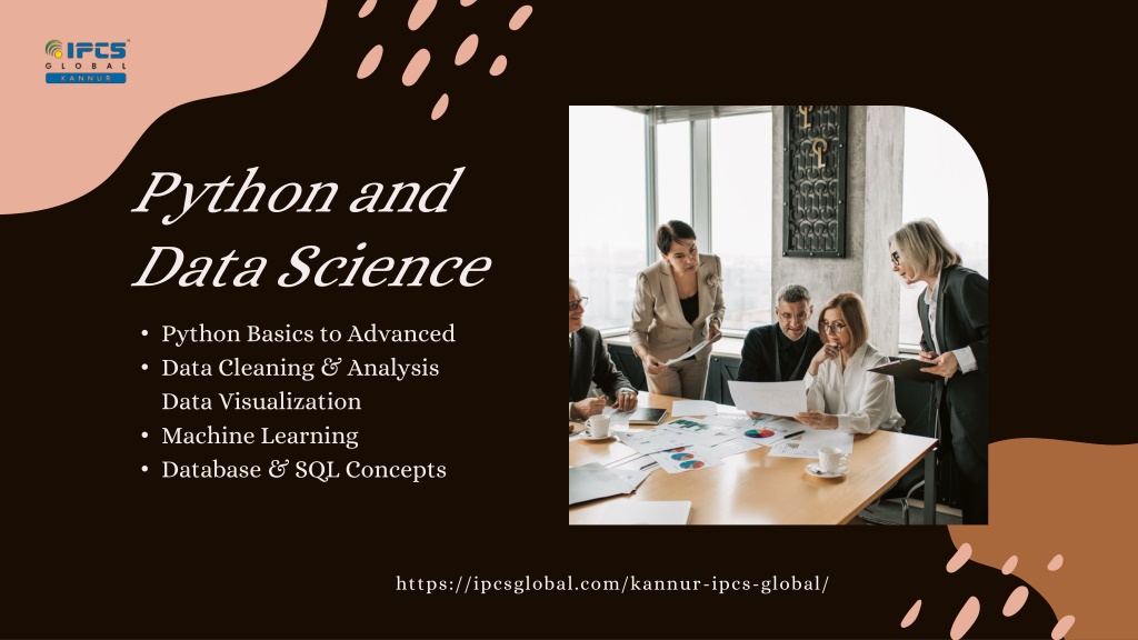 Python and Data Science • Python Basics to Advanced • Data Cleaning & Analysis Data Visualization • Machine Learning • Database & SQL Concepts https://ipcsglobal.com/kannur-ipcs-global/