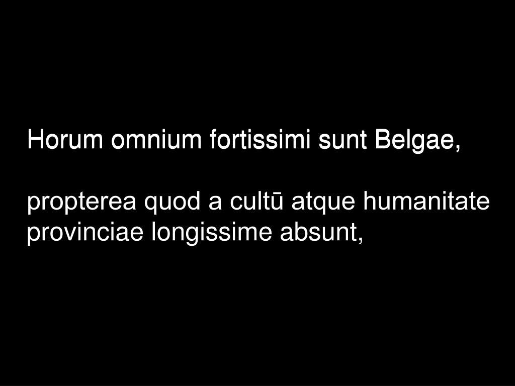 Horum omnium fortissimi sunt Belgae, propterea quod a cultū atque humanitate provinciae longissime absunt, Horum omnium fortissimi sunt Belgae, propterea quod a cultū atque humanitate provinciae longissime absunt,