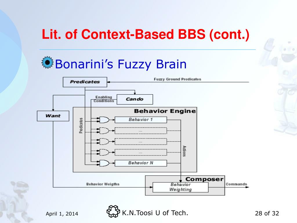 Lit. of Context-Based BBS (cont.) • Bonarini’s Fuzzy Brain K.N.Toosi U of Tech.