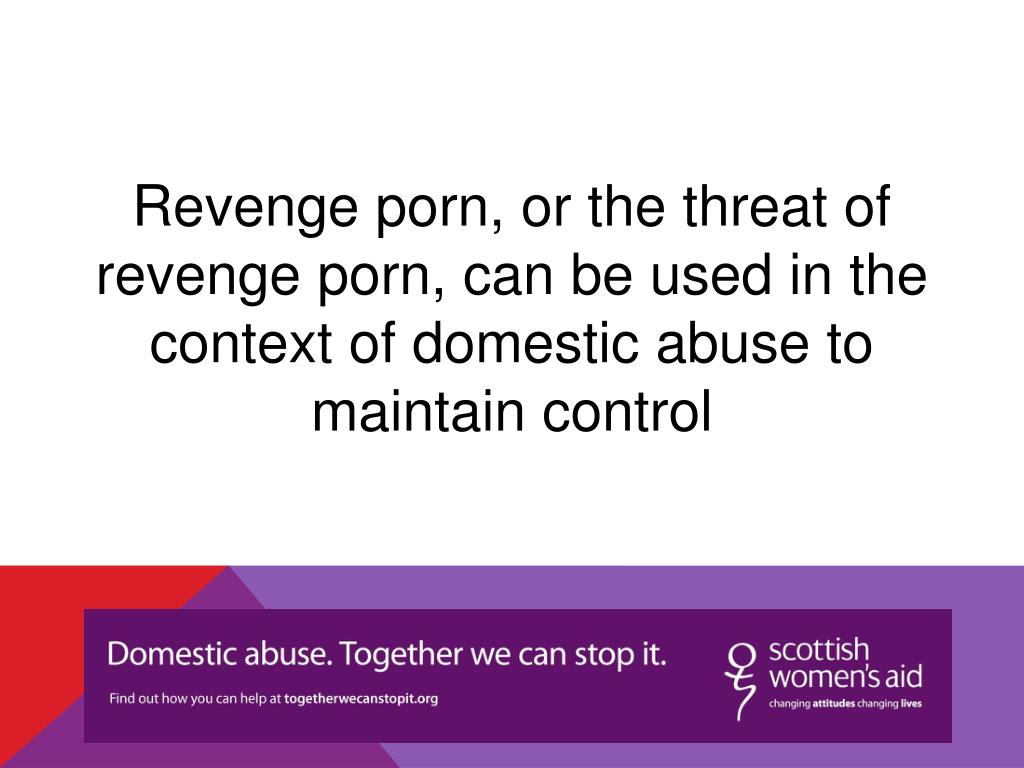 Revenge porn, or the threat of revenge porn, can be used in the context of domestic abuse to maintain control