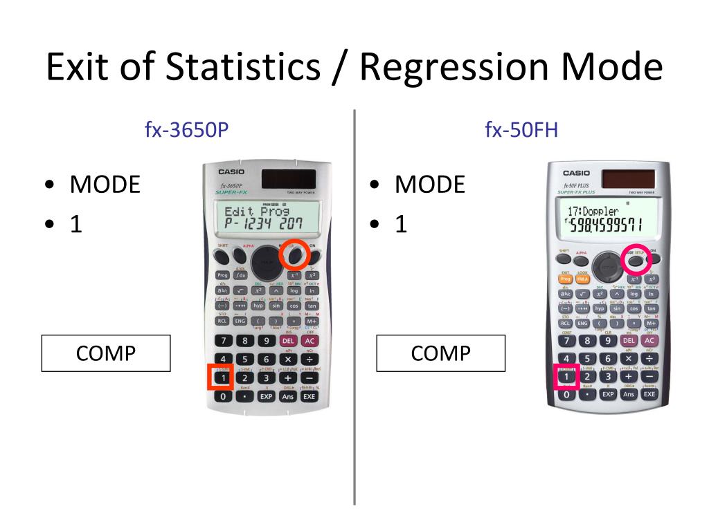 MODE 1 MODE 1 Exit of Statistics / Regression Mode fx-3650P fx-50FH COMP COMP