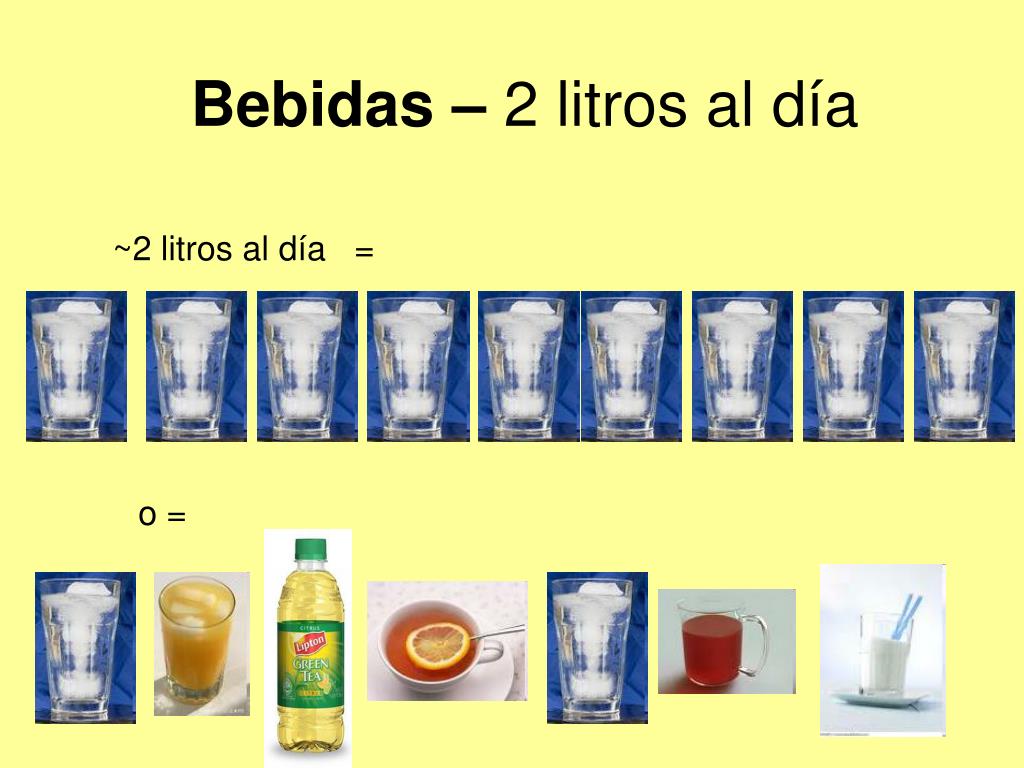 Bebidas – 2 litros al día ~2 litros al día = o =