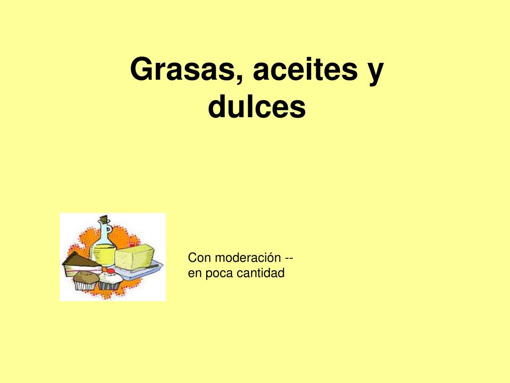 Grasas, aceites y dulces Con moderación -- en poca cantidad