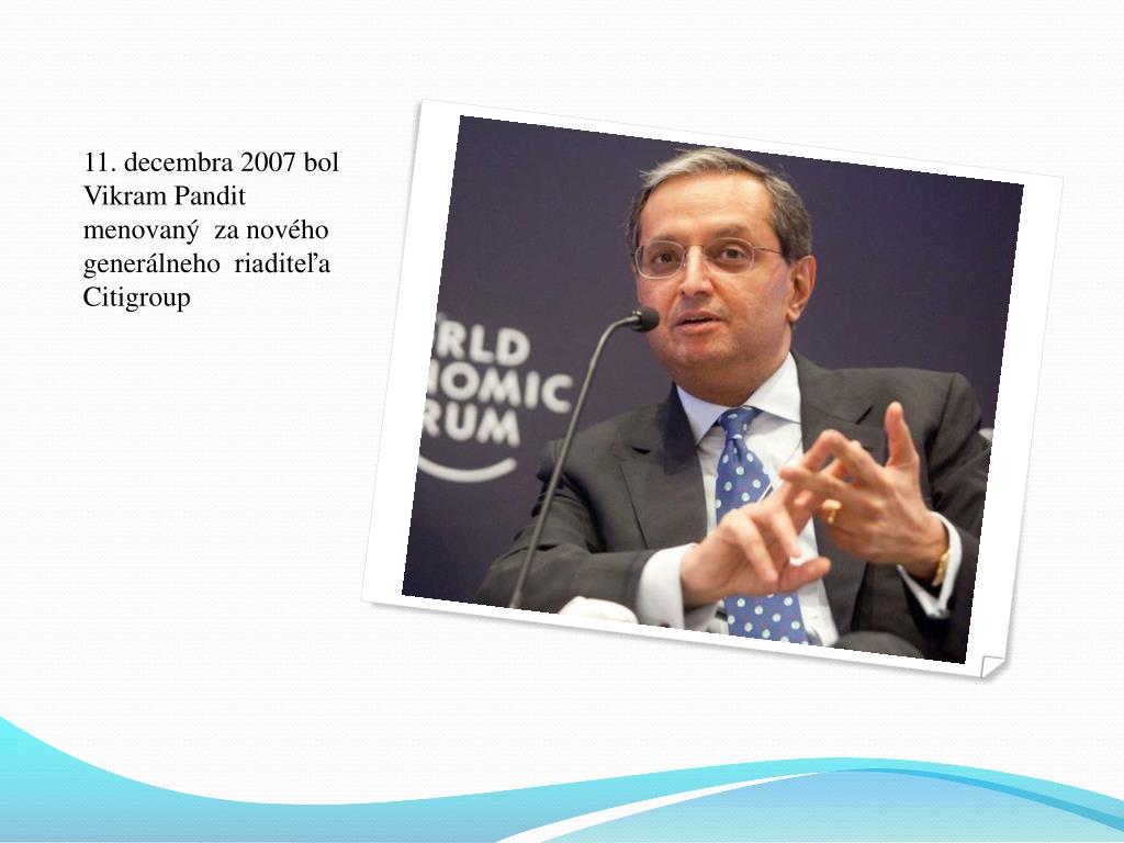 11. decembra 2007 bol VikramPanditmenovaný za novéhogenerálnehoriaditeľa Citigroup