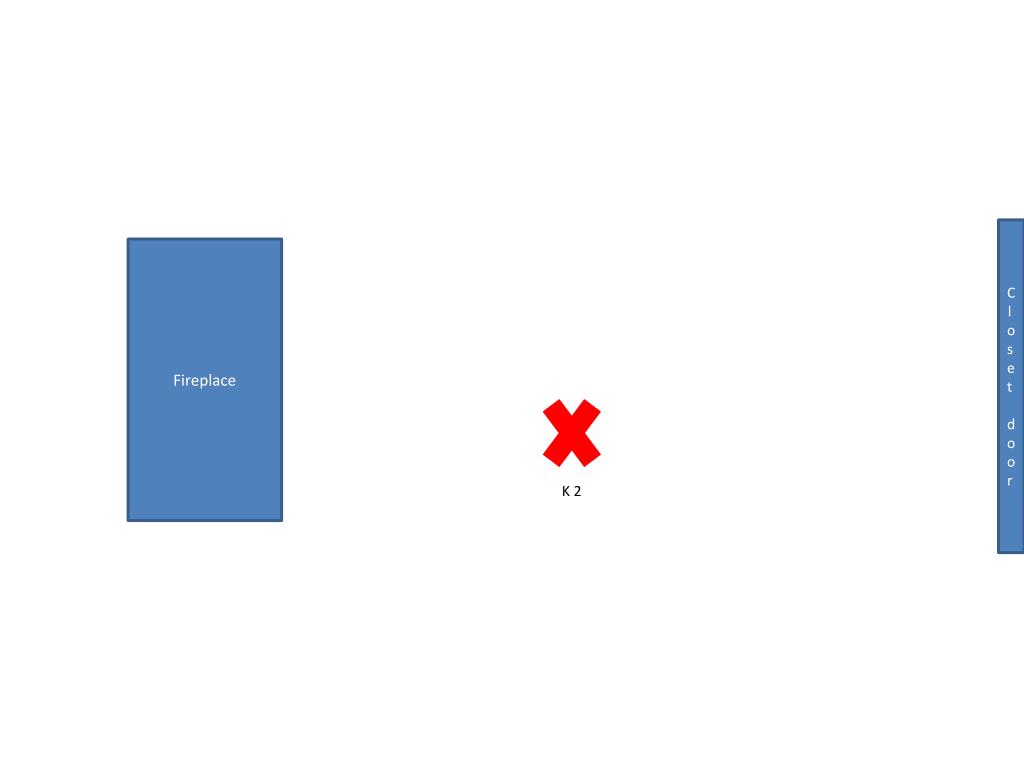 Fireplace 2. K1 sees police coming &pours Makayla’s hot cocoa (who doesn't see the police yet) on her so that she has to go to the bathroom to dry off Closet door k2 Santa k 1 1. K1 puts Santa into closet knowing that the police were going to come eventually