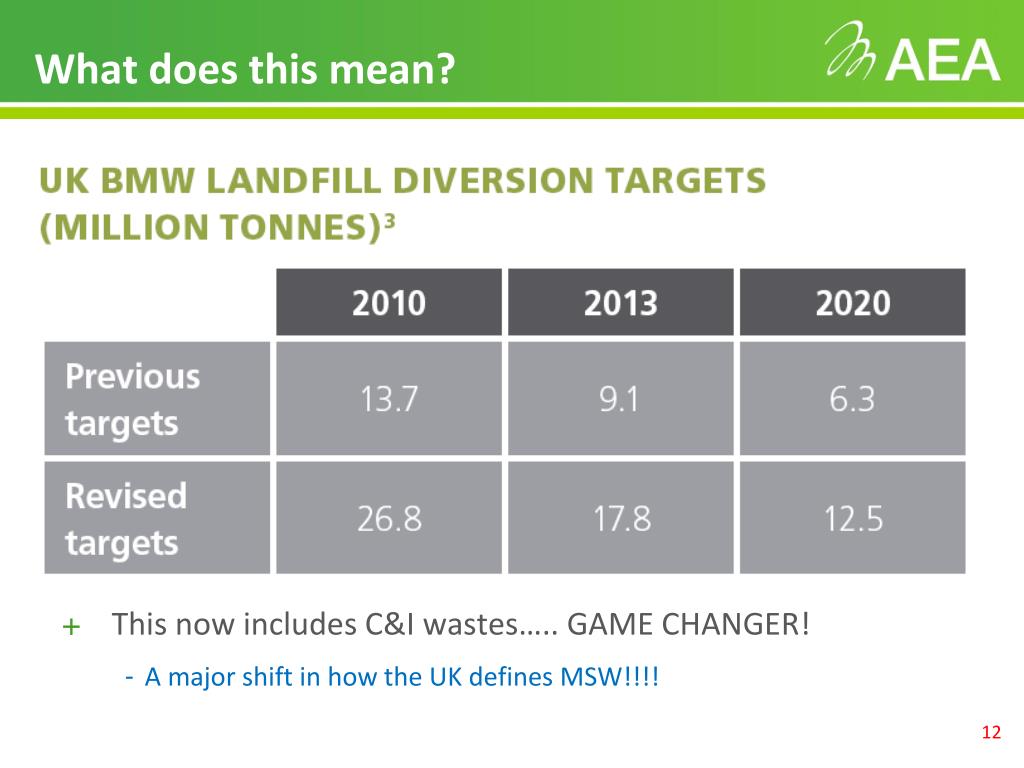 What does this mean? • This now includes C&I wastes….. GAME CHANGER! • A major shift in how the UK defines MSW!!!!