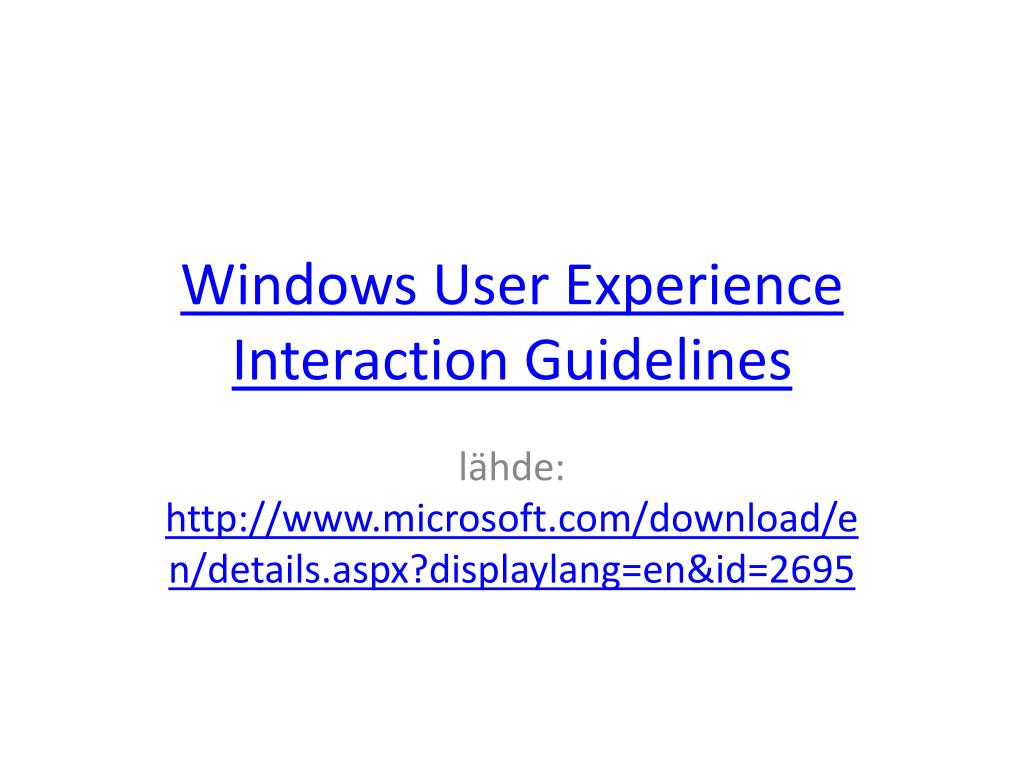 Windows UserExperienceInteractionGuidelines lähde: http://www.microsoft.com/download/en/details.aspx?displaylang=en&id=2695