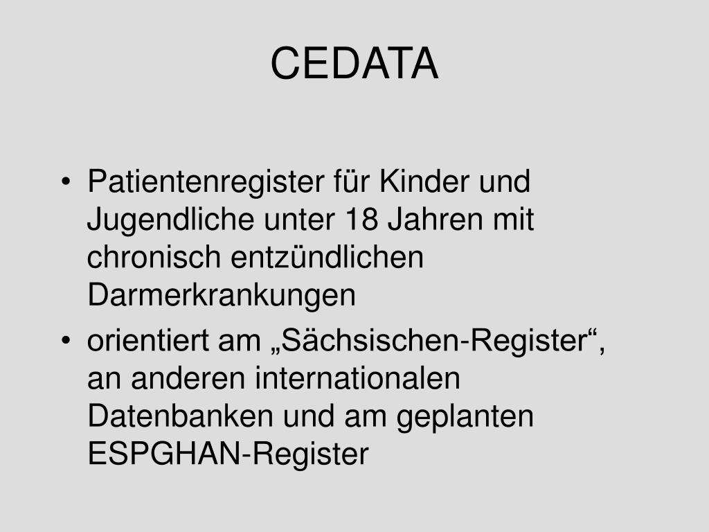 CEDATA • Patientenregister für Kinder und Jugendliche unter 18 Jahren mit chronisch entzündlichen Darmerkrankungen • orientiert am „Sächsischen-Register“, an anderen internationalen Datenbanken und am geplanten ESPGHAN-Register