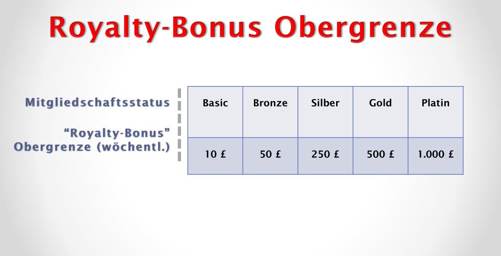 Royalty-Bonus Obergrenze Mitgliedschaftsstatus “Royalty-Bonus” Obergrenze(wöchentl.)