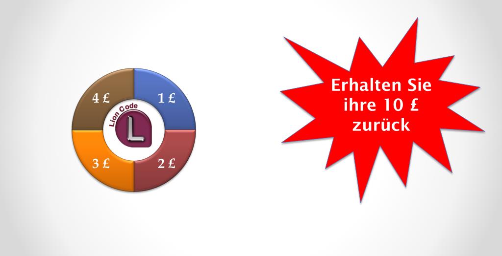 “Das Lion-Code”-Training- 100 £ Online Marketing-System- 99 £ PersönlicheEmpfehlungswebseite- Gratis State of the art back office- Gratis “LEO Smart” App(iPhone & Android)- Gratis Registrierungsgebühr- Gratis “Lion-Code”-Paket 199 £ 10 £
