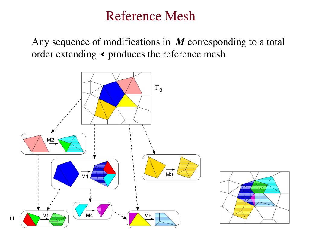 Reference Mesh Any sequence of modifications in M corresponding to a total order extending < produces the reference mesh