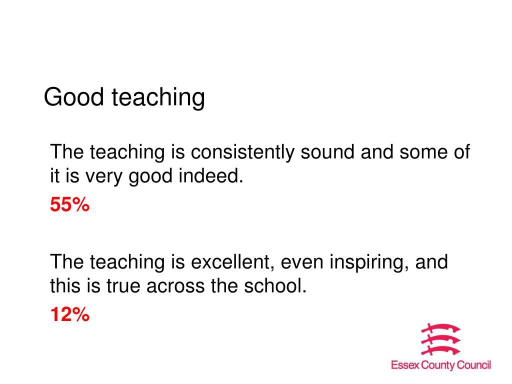 Good teaching The teaching is consistently sound and some of it is very good indeed. 55% The teaching is excellent, even inspiring, and this is true across the school. 12%